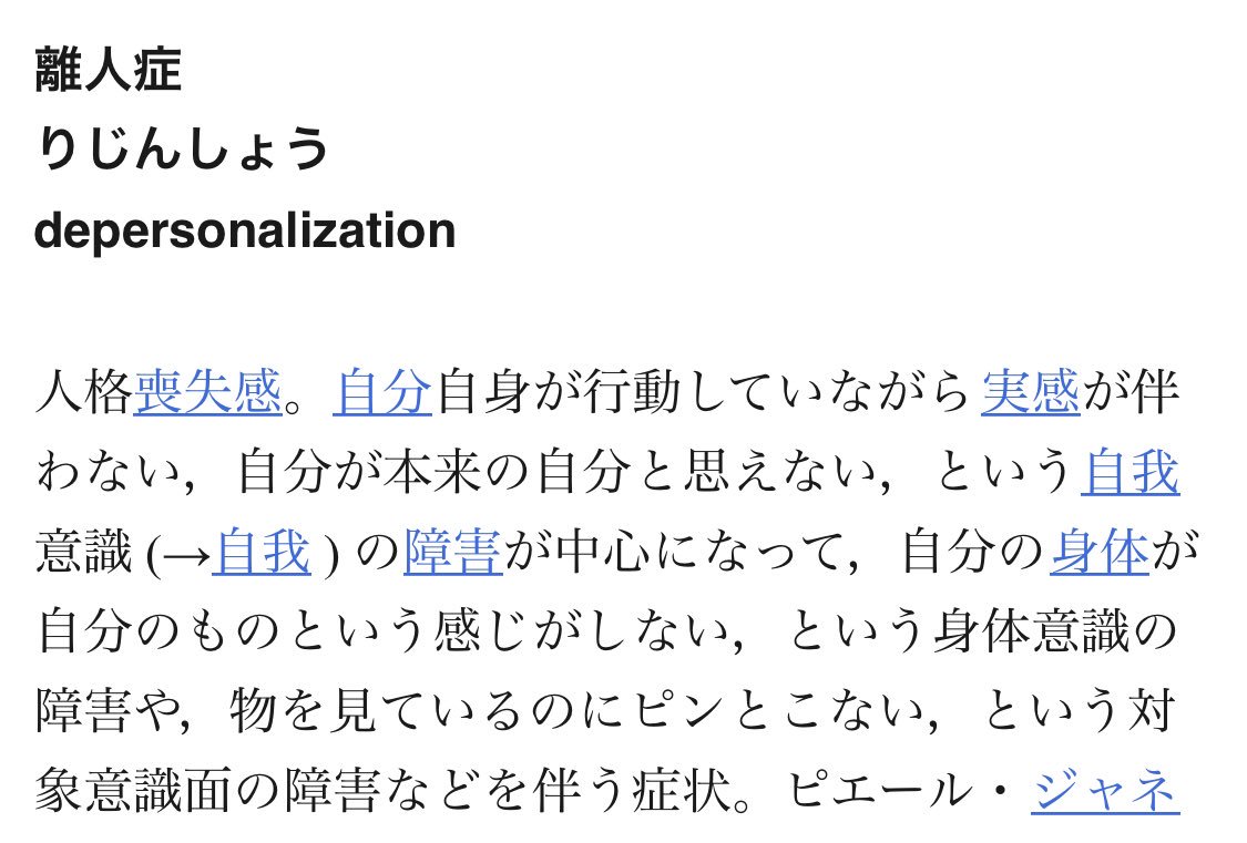 デクスター On Twitter 不思議の国のアリス症候群で思い出した 離人症 今はほとんどないけど小さい時は非日常的な状況に陥入るとよく発症してた 自分は普通に喋ったり行動したりしてるのに 自分が操作してる感覚がないっていう